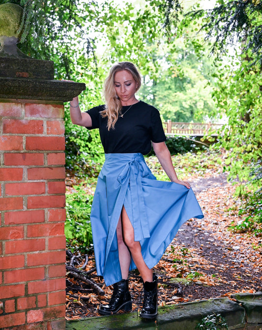 Meyer Wrap Midi Skirt In Wedgwood With Pockets