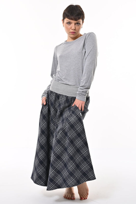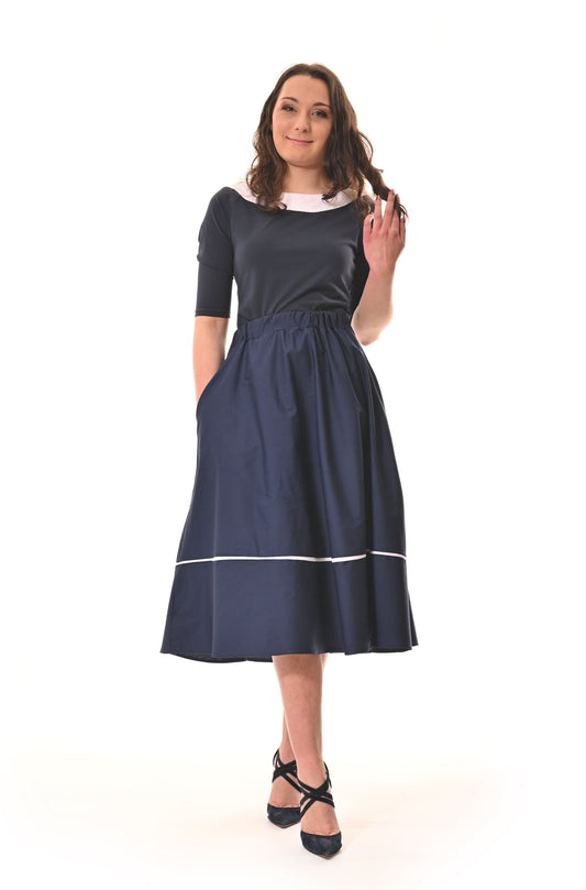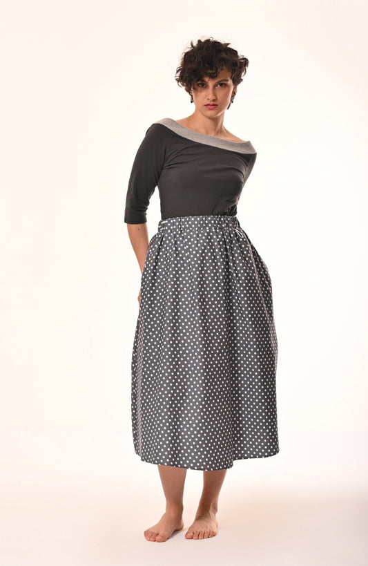 Sovereign Skirt With Pockets In Charcoal Polka-dot