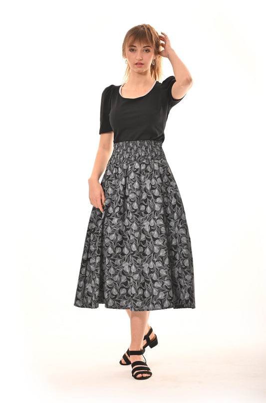 Boho Midi Skirt With Pockets In Grey Polka Dot