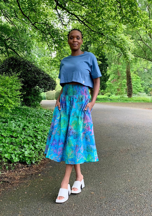 Orchid Midi Skirt With Pockets In Waterside Print