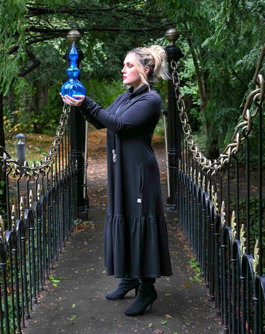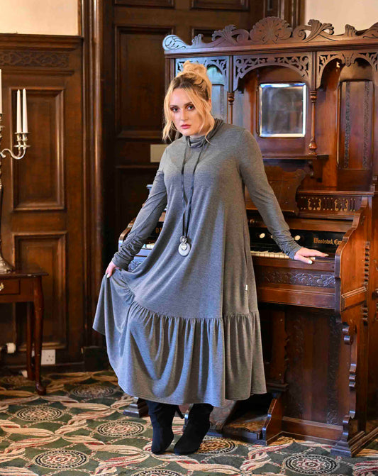 Guru Flared Top with Blouson Sleeves in Charcoal