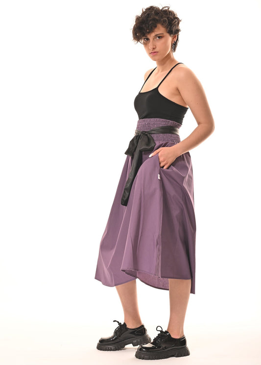 Orchid Midi Skirt With Pockets In Pale Grape