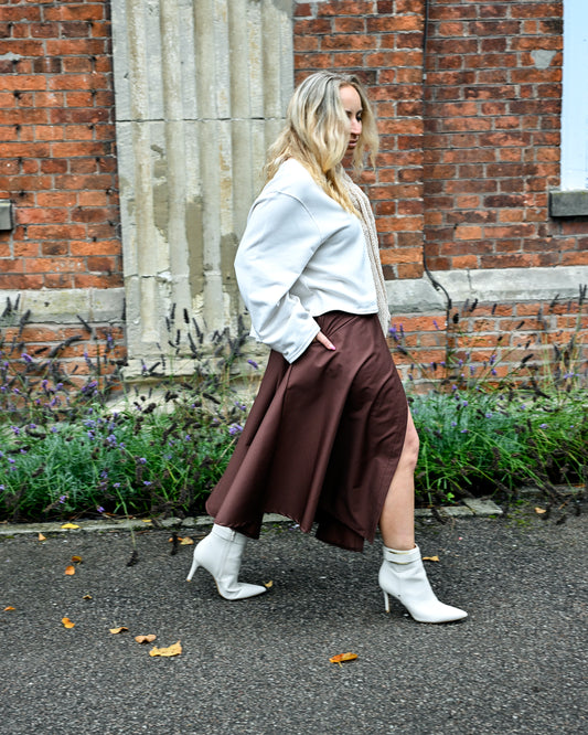 Jupe portefeuille midi Meyer marron chocolat avec poches
