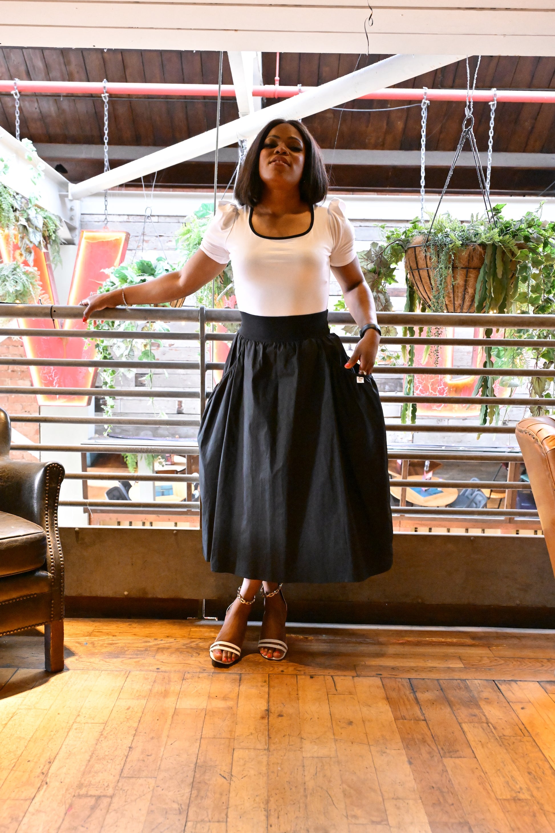 Enfilez notre jupe midi Alice pour une journée d'aventure. Ses grandes poches latérales sont un atout indéniable et très pratiques au quotidien : elles peuvent accueillir votre téléphone et autres essentiels. La ceinture côtelée profonde affine la taille et offre une silhouette élégante et confortable. C'est une pièce incontournable en toute saison, parfaite avec des escarpins aux beaux jours et avec des collants et des bottes en hiver. Notre mannequin mesure 1,75 m et porte une taille S avec notre top Juthamat. Consultez notre guide des tailles.