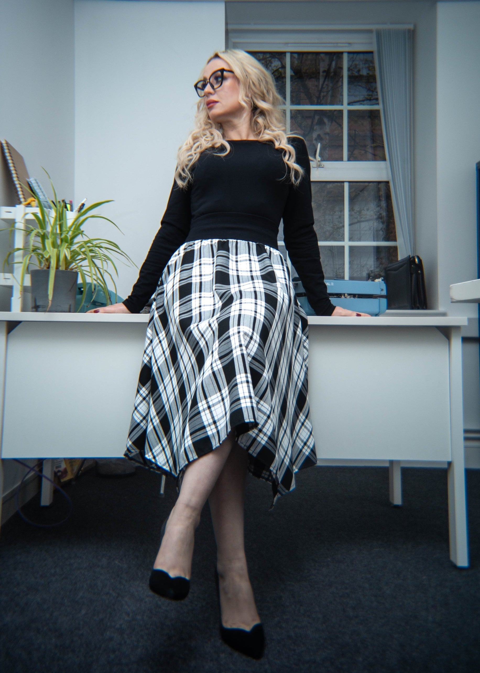 Be your chicest self in our Avalon Top, the perfect desk to dinner staple, suitable for the office and an evening out. This has a classic shape with full-length sleeves and an elegant asymmetric neck, which shows just a peek of your collarbone and a beautiful cream rose print on the back. This garment is made from a stretchy jersey that feels luxurious against the skin, and skims your curves without being tight. Our model is 5ft 5" and wears an S with our Morven Hanky Hem Skirt. Please see our size guide.