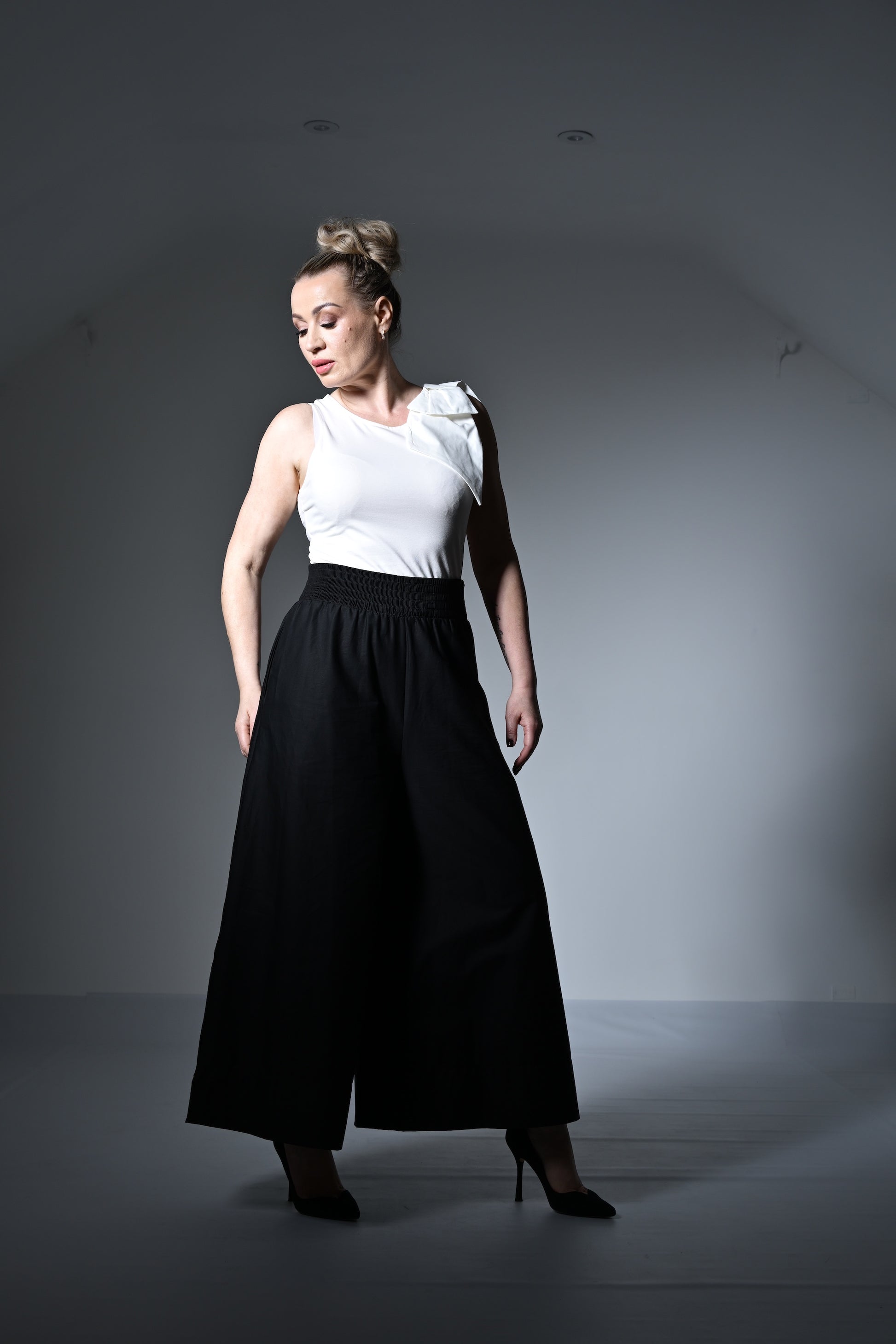 Le top Brook est un classique chic, l'ensemble parfait avec un jean et un joli haut. Son nœud décoratif oversize orne fièrement l'épaule gauche. Confectionné en viscose bouclée stretch, il offre une sensation luxueuse sur la peau et épouse vos courbes. Porté de façon décontractée ou plus habillée, il vous assure une allure de star. Notre mannequin mesure 1,70 m et porte une taille XS avec le châle Meyer à plumes et la jupe Boho imprimée de roses. Consultez notre guide des tailles.