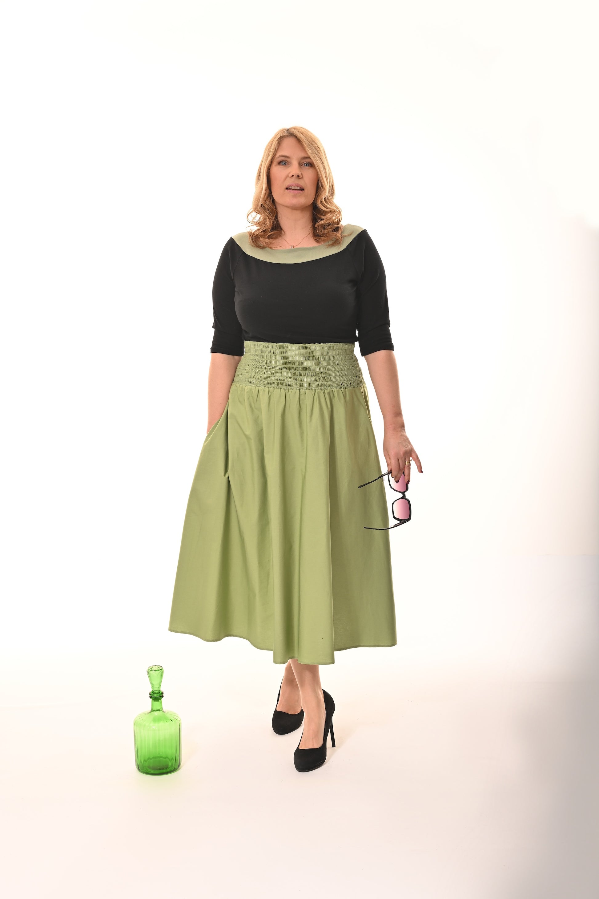 Feel your chicest self in our Boating Top. Wear tucked in or out, wear with jeans or skirts, to be sure that you will be comfortable as well as stylish all day long! The boat neckline is super elegant and skims your collarbones. The perfect top to dress up or dress down, but keeping a touch of class where ever you are. Our model is 5ft 6" and wears an M with our Orchid Midi Skirt. Please see our size guide.