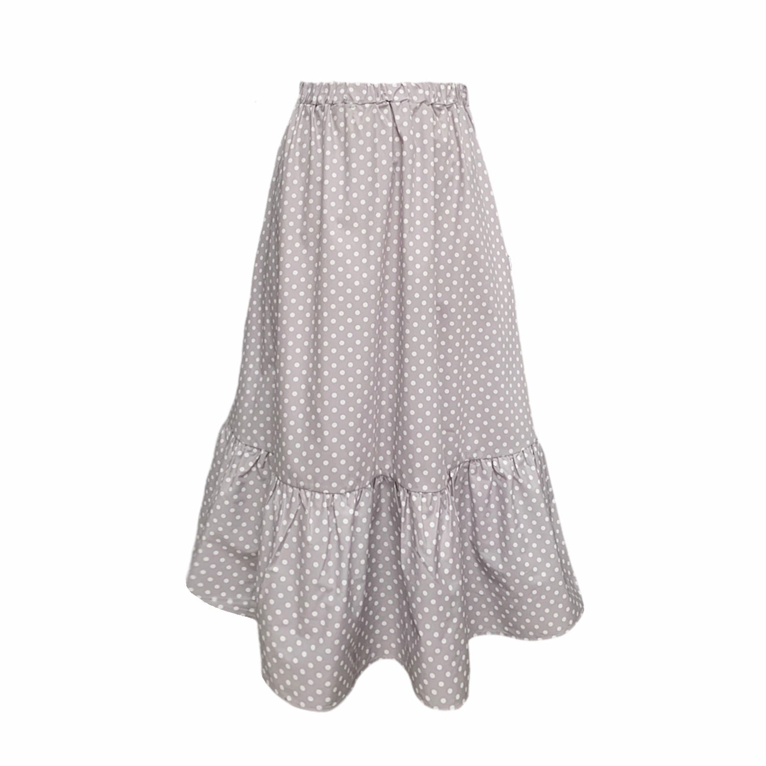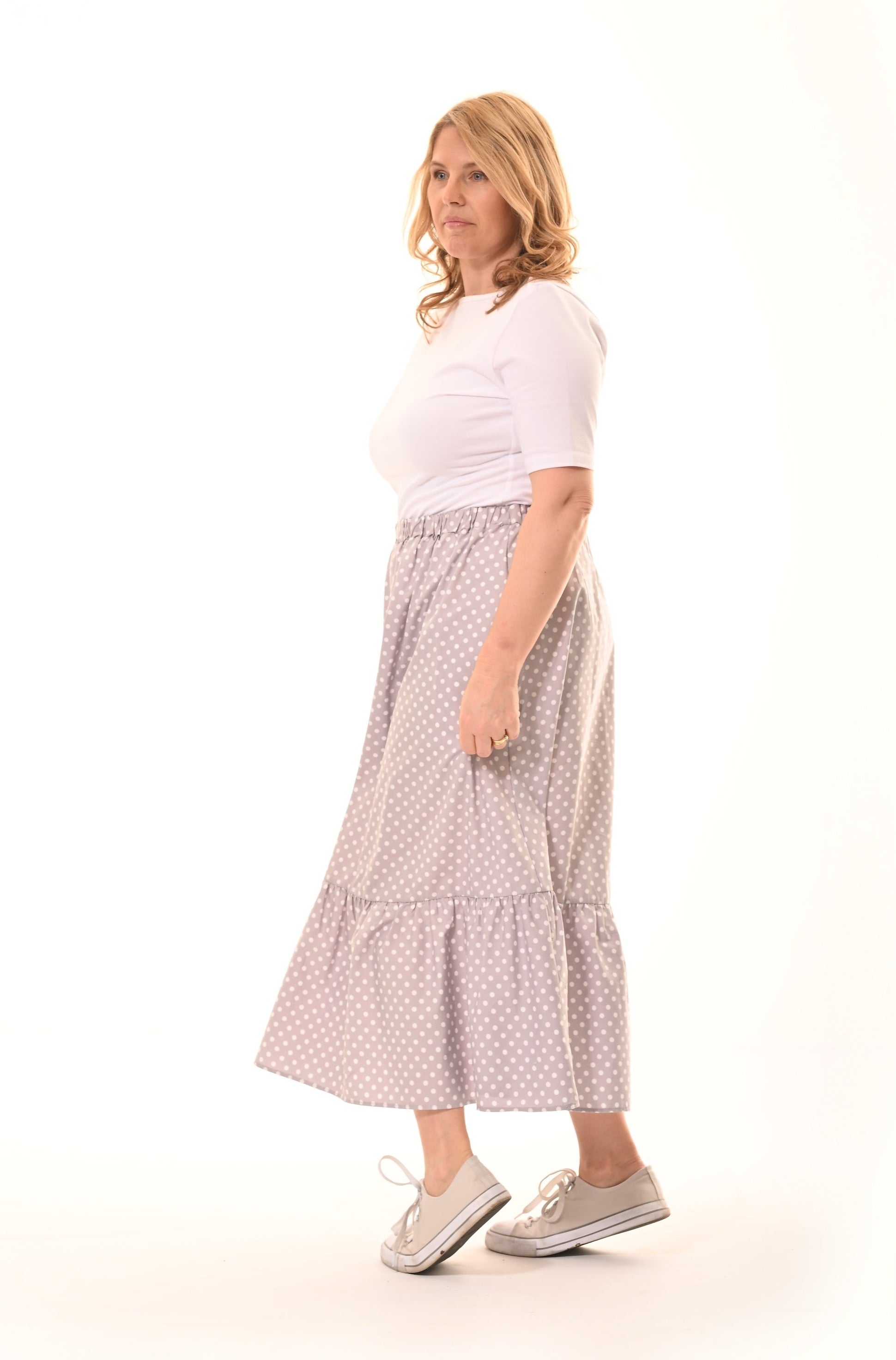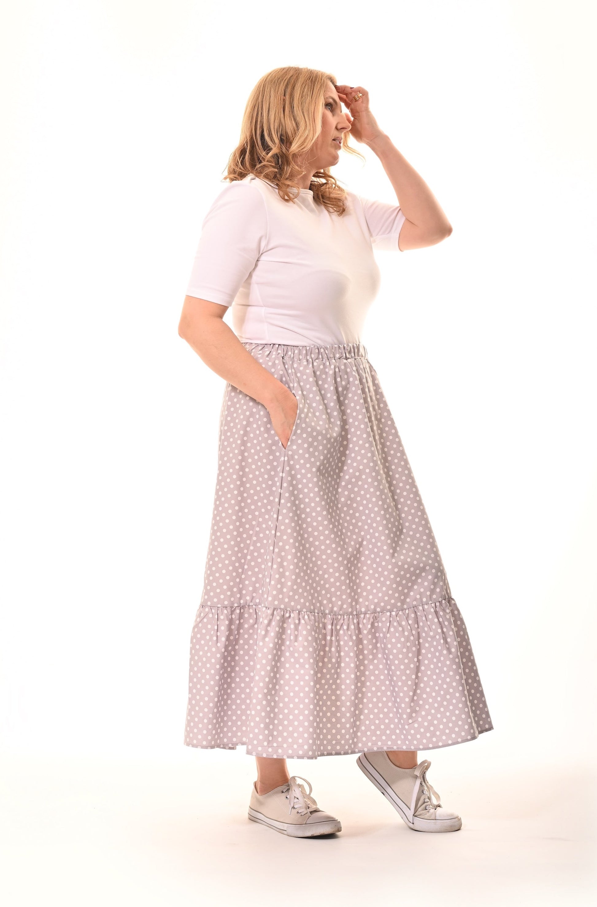 Boho Midi Skirt With Pockets In Grey Polka Dot