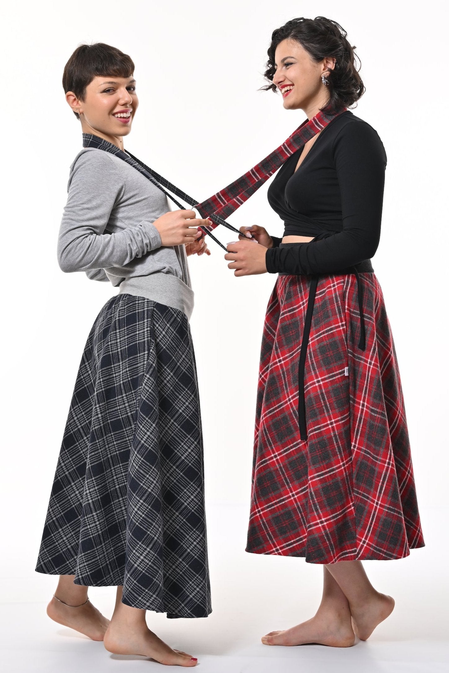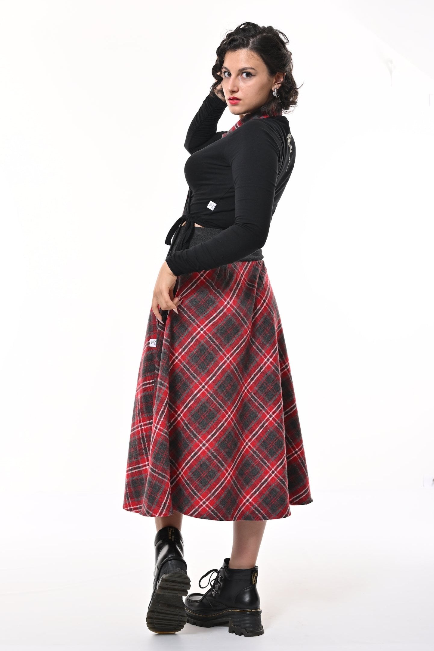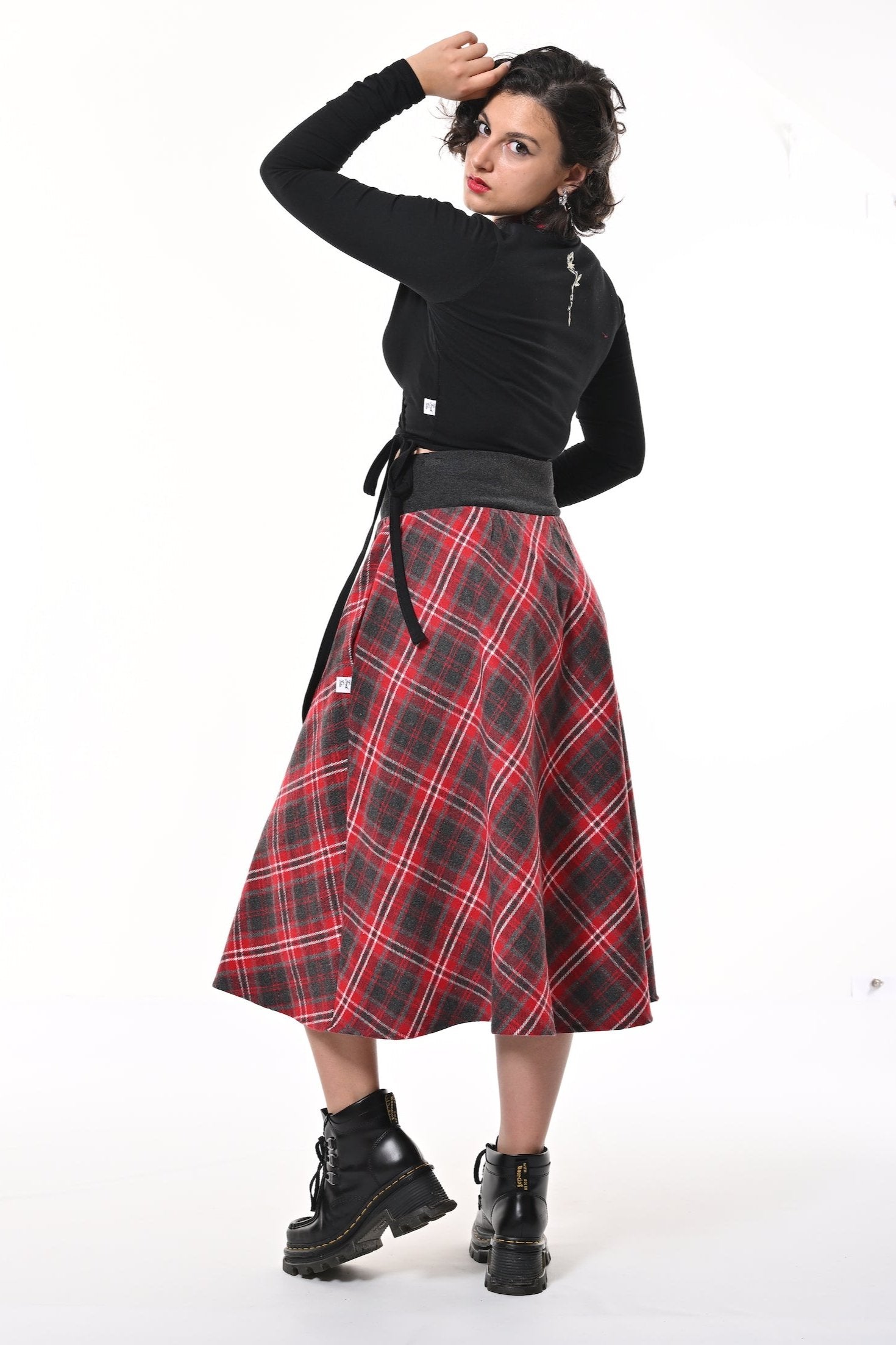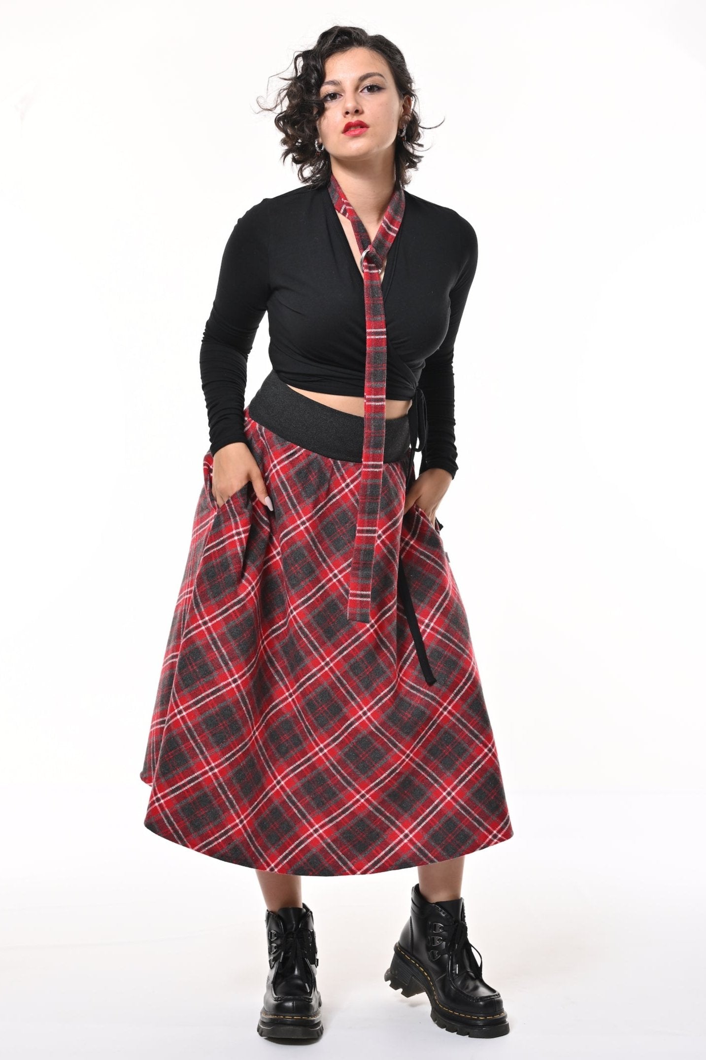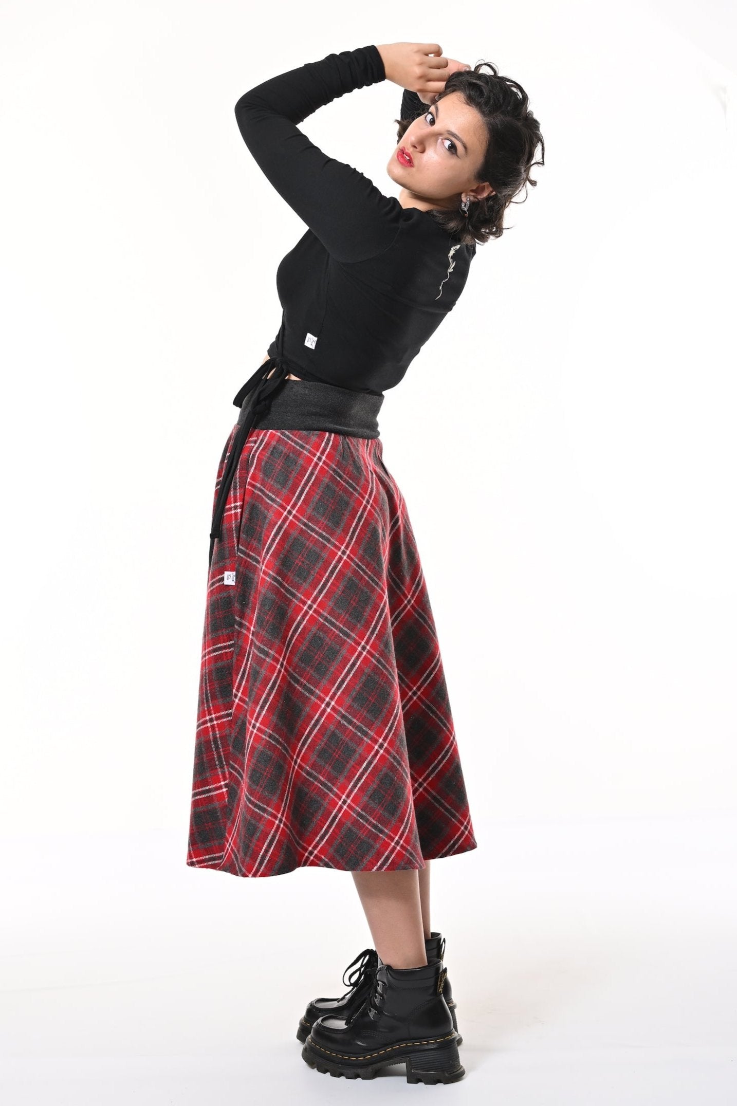 Pull on our limited edition Bonnie Midi Skirt for a day of adventure. Made from a soft polyester and wool blend, this is the perfect skirt for Autumn/Winter! The side pockets are a must in our busy lives and these can truly fit your phone as well as other essentials. The Gorgeous stretchy deep waistband cinches in your waist but feels comfortable against you skin for ultimate comfort. Wear with tights and boots for the perfect cozy look. Our model is 5ft 7" and wears an S with our Kenza Wrap. Please see our size guide.