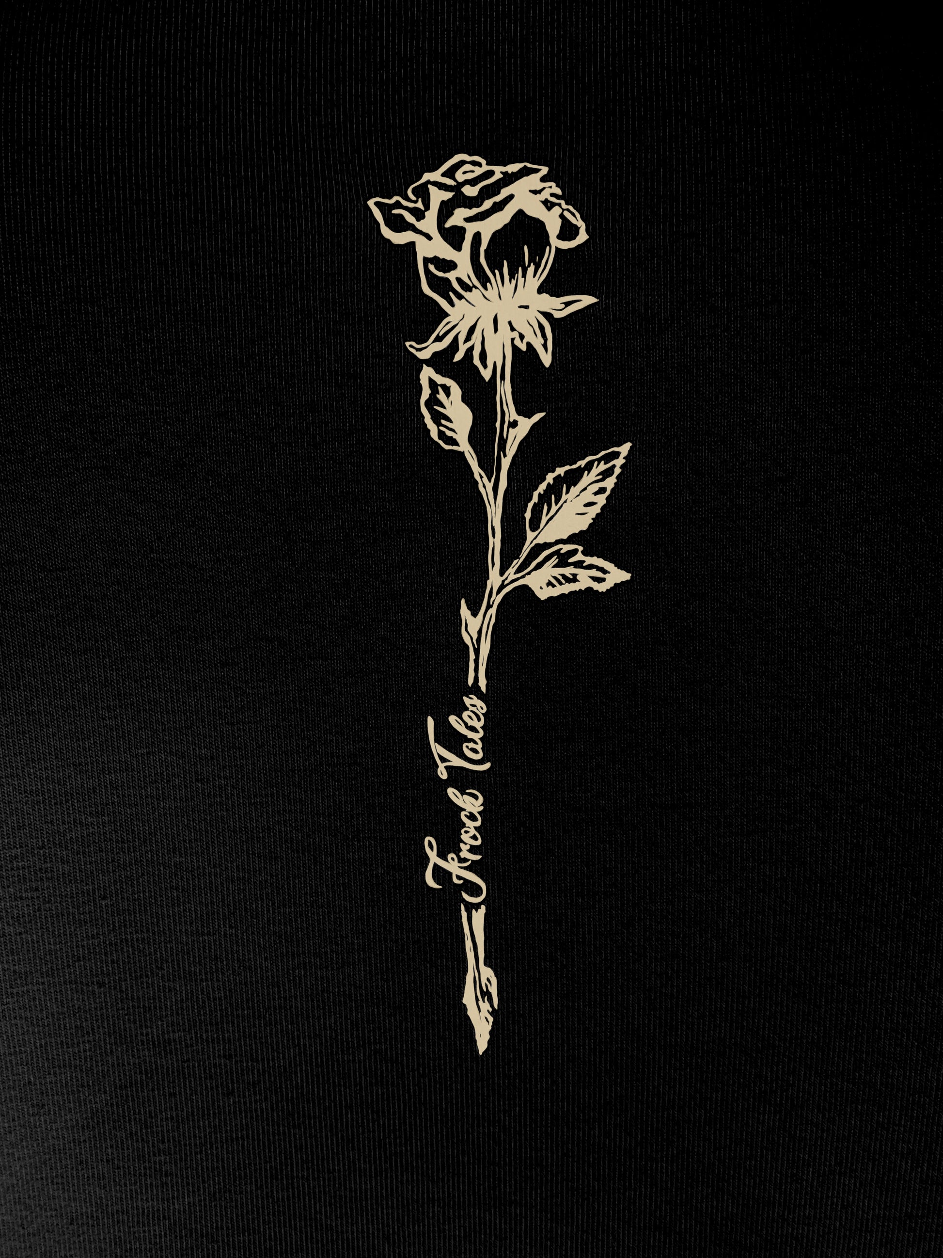 Tale: The Daisy Ballet Wrap is a key piece in our balletcore aesthetic. Dance your way in to the next season in the softest black fabric knotted for us in the UK. The long ties can make a bow at the side or back and the ruched sleeves are a nod to 80's dancewear. The cute flower graphic reminds you that you will always be a rose in your life story. Team this with any of our skirts and trousers or your own jeans. Our model is 5ft 11" and wears a small.