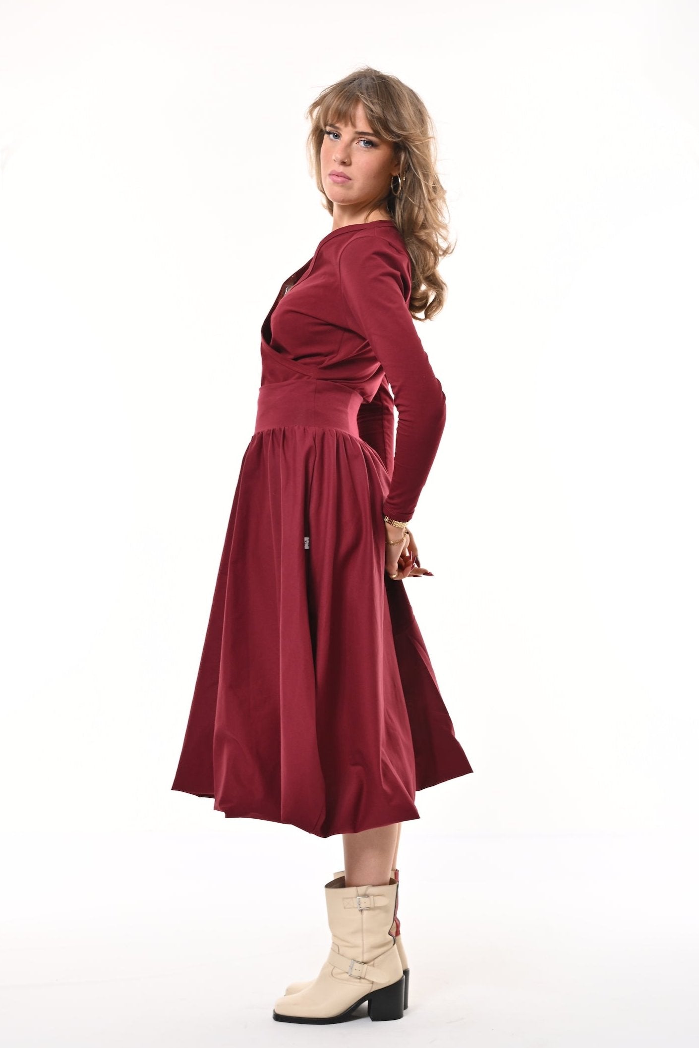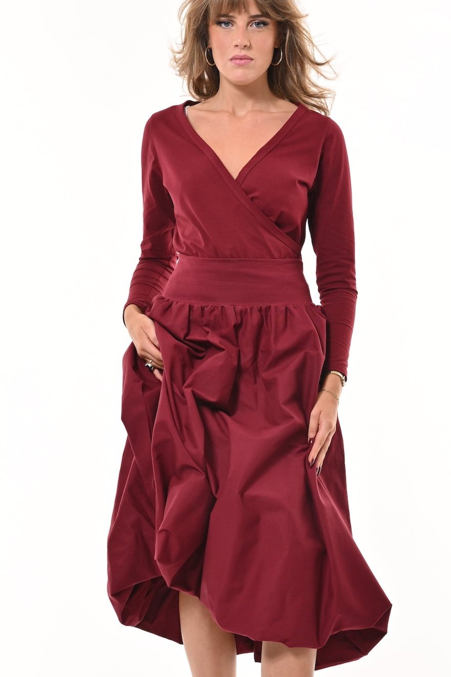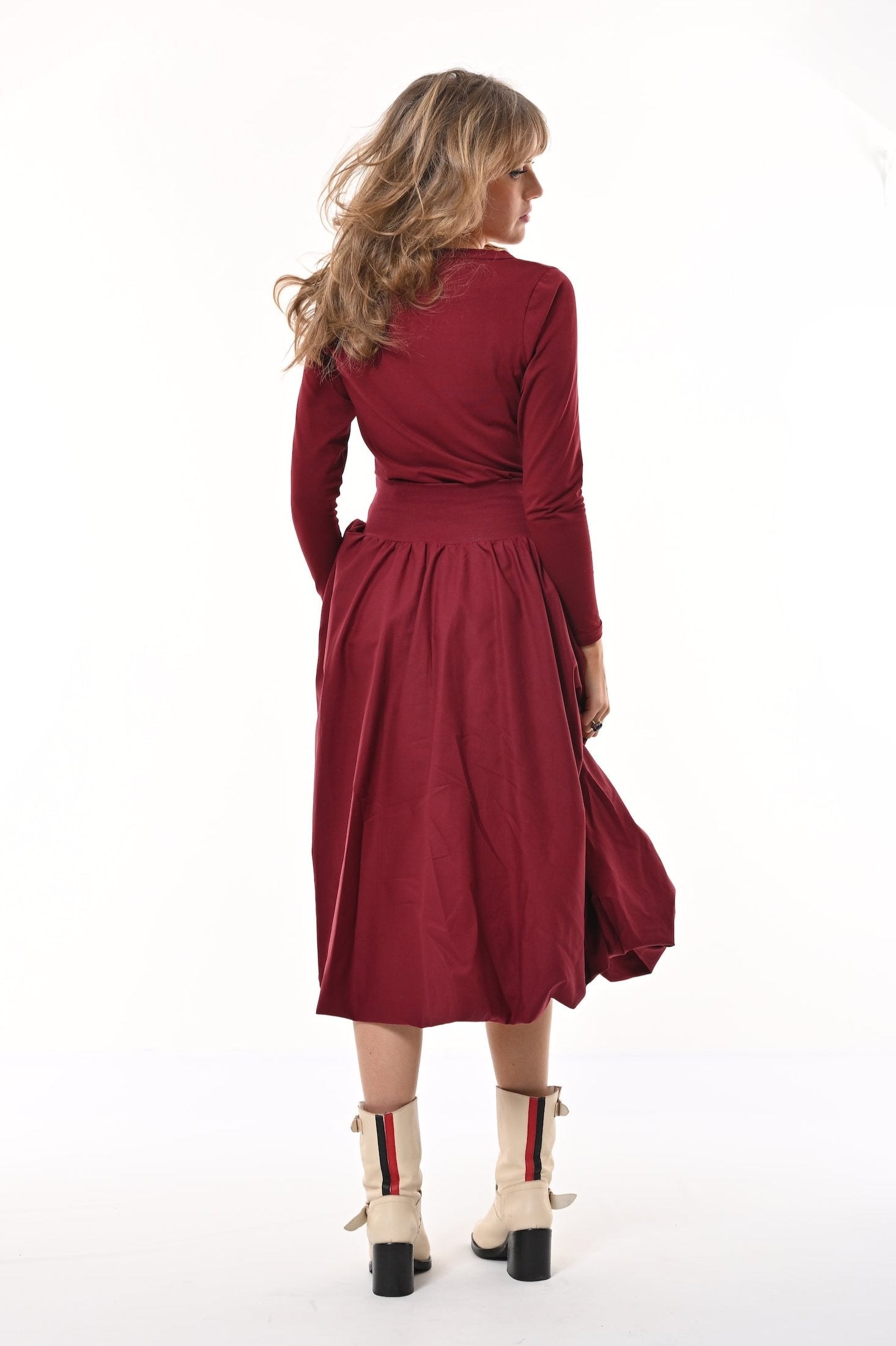 Pull on our Enoki Puffball Skirt for a day to evening adventure. The side pockets are a must in our busy lives and these fit your phone as well as all of your other essentials. The gorgeous deep waistband cinches in your waist without being tight and this skirt is fully lined with soft jersey for ultimate comfort. Our model is 5ft 9" and wears an S with our Juthamat Top in burgundy. Please see our size guide.