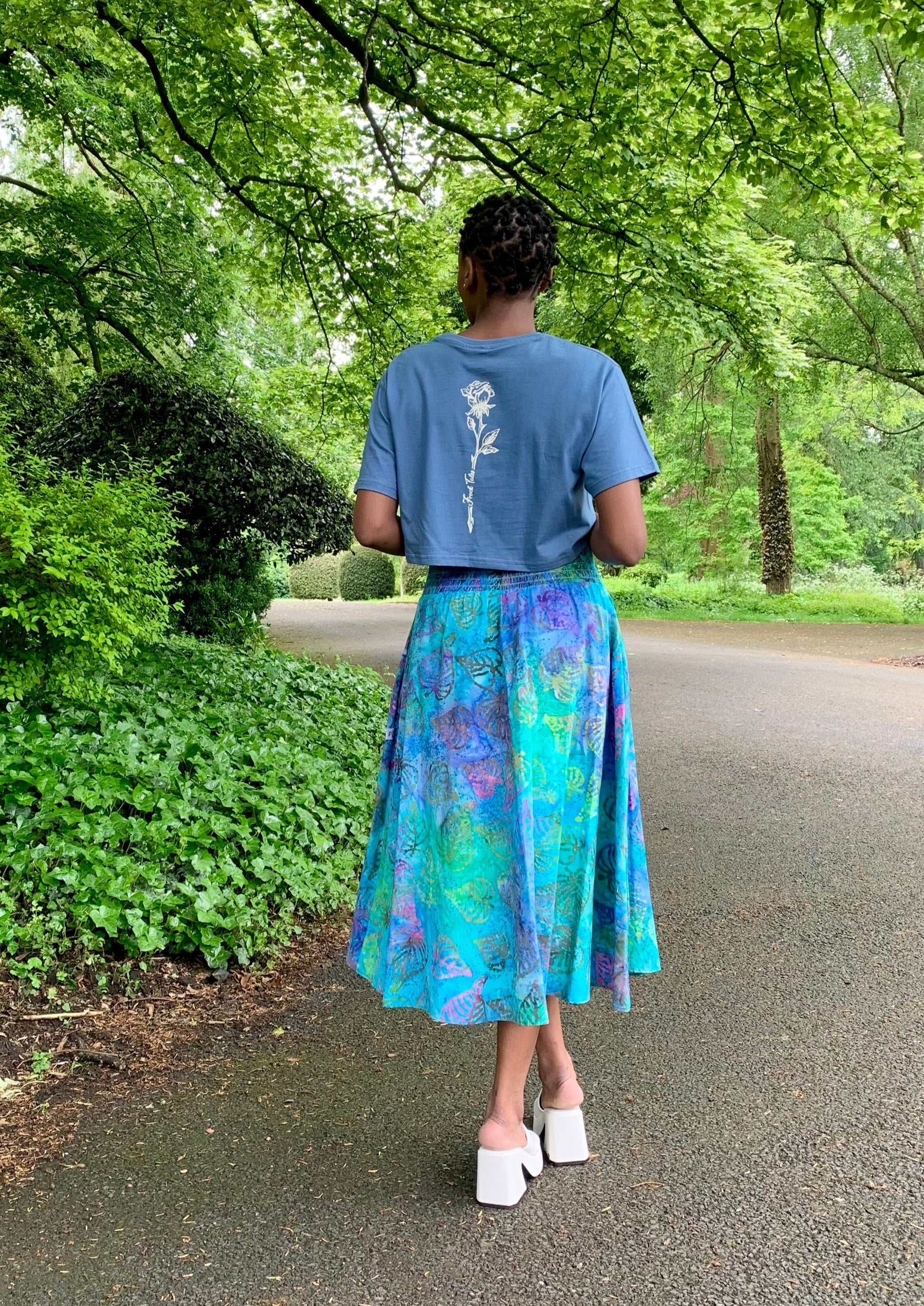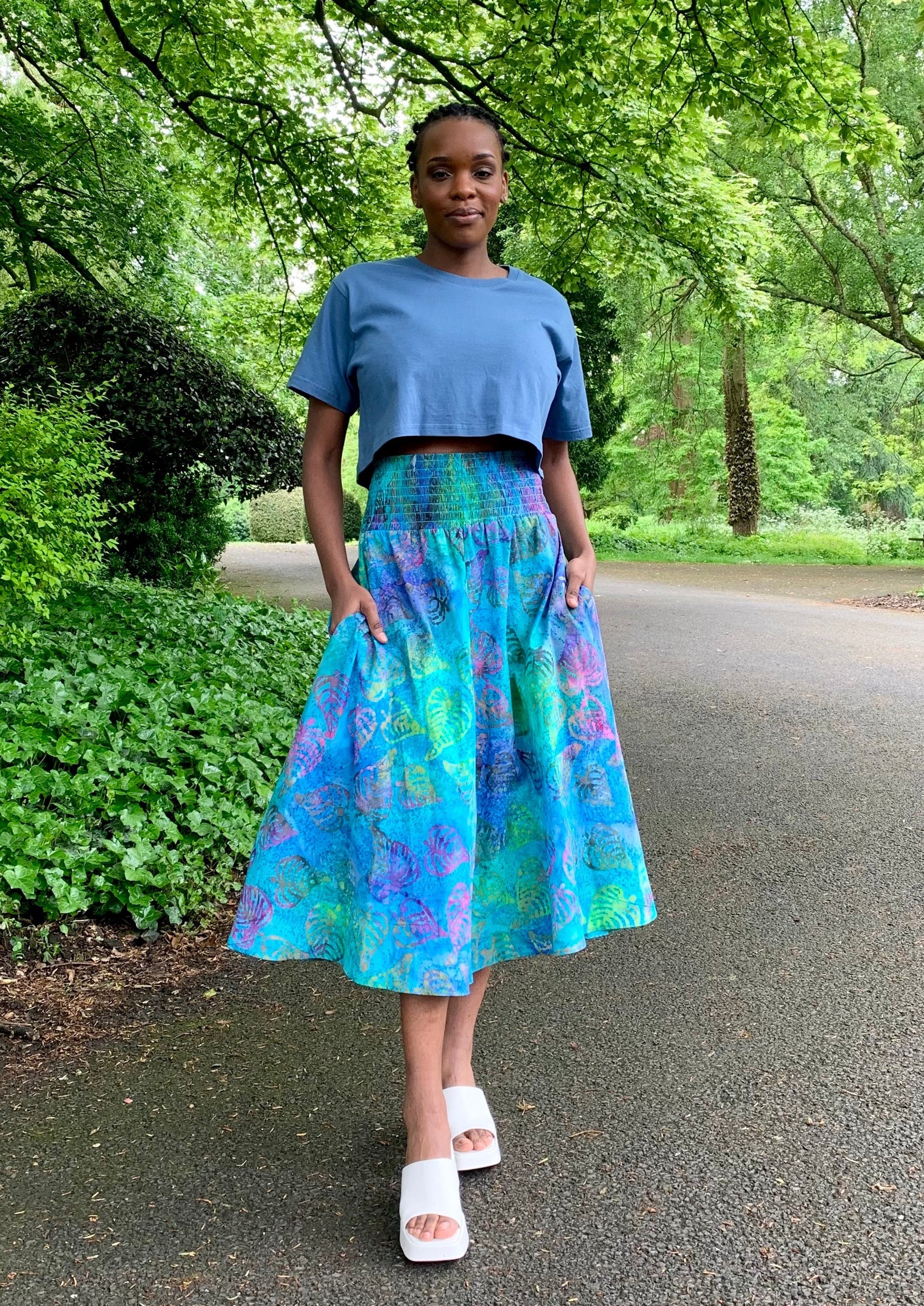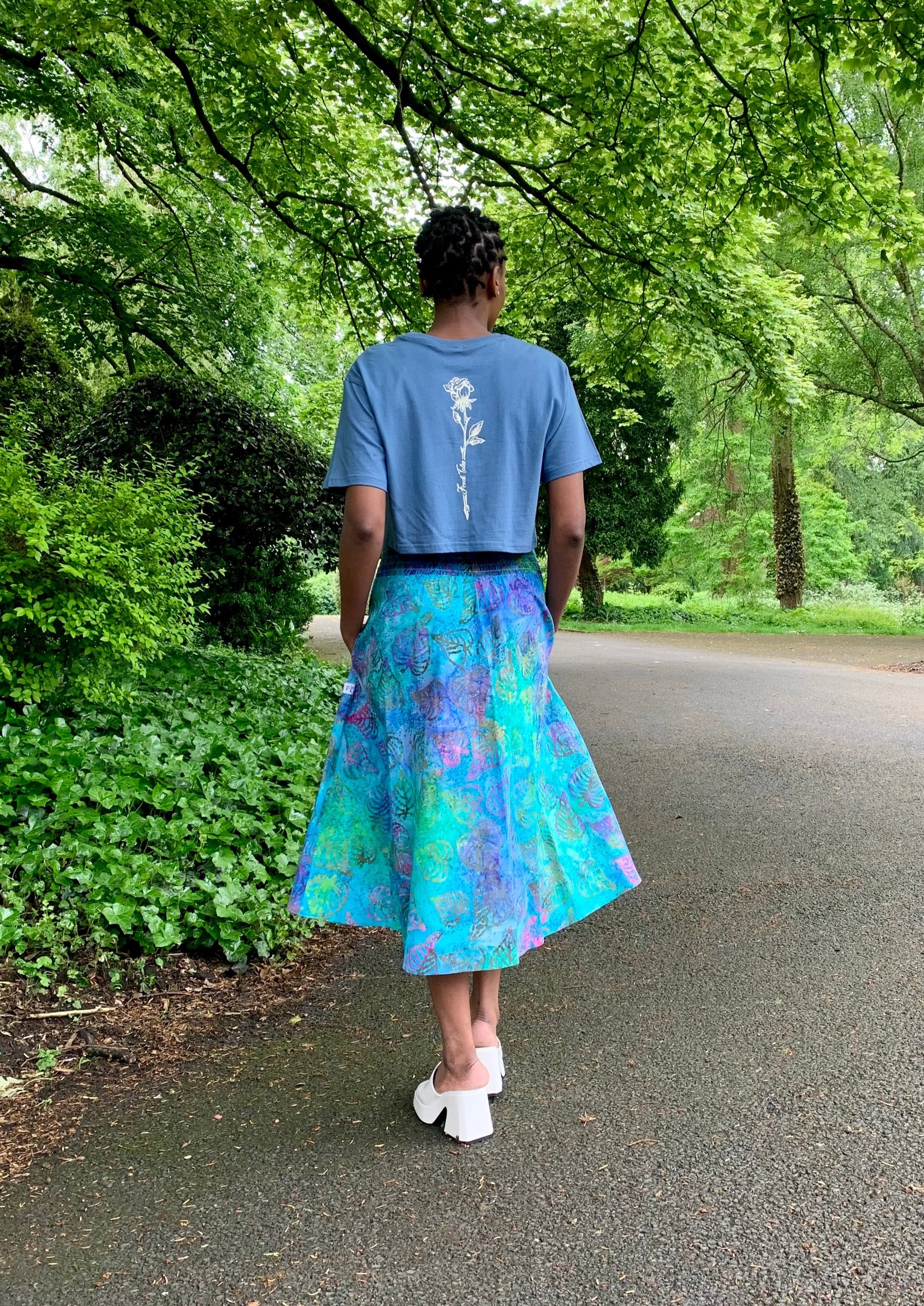 Tale: Pull-on our Orchid Midi Skirt for a day of adventure. The side pockets are a must in our busy lives and these can truly fit your phone as well as other essentials. The Gorgeous shirred deep waistband cinches in your waist and this is lined with bamboo jersey for ultimate comfort. Our model is 5ft 8" and wears an S. Please see our size guide.