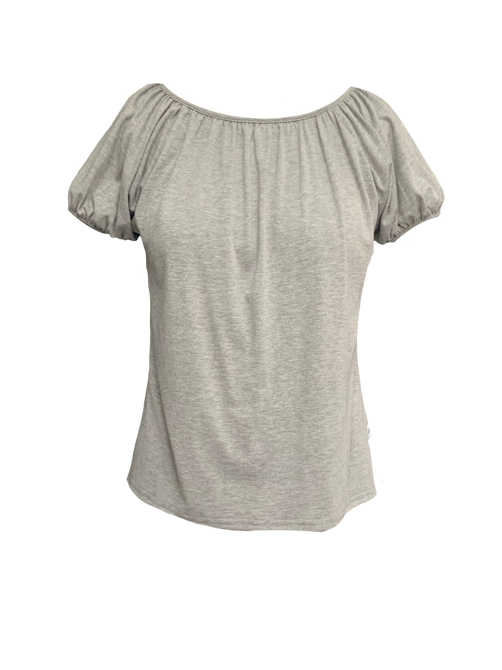 Swish and sway in our Posey Top, wear tucked in or out, wear with jeans or skirts, be sure that you will be comfortable as well as stylish all day long! The gathered neckline, back keyhole and tie at the centre back is a cute feature. Wear with our Grey boho skirt in matching fabric or printed skirts. Our model is 5ft 6" and wears an XS with our Grey Marl Boho Skirt.